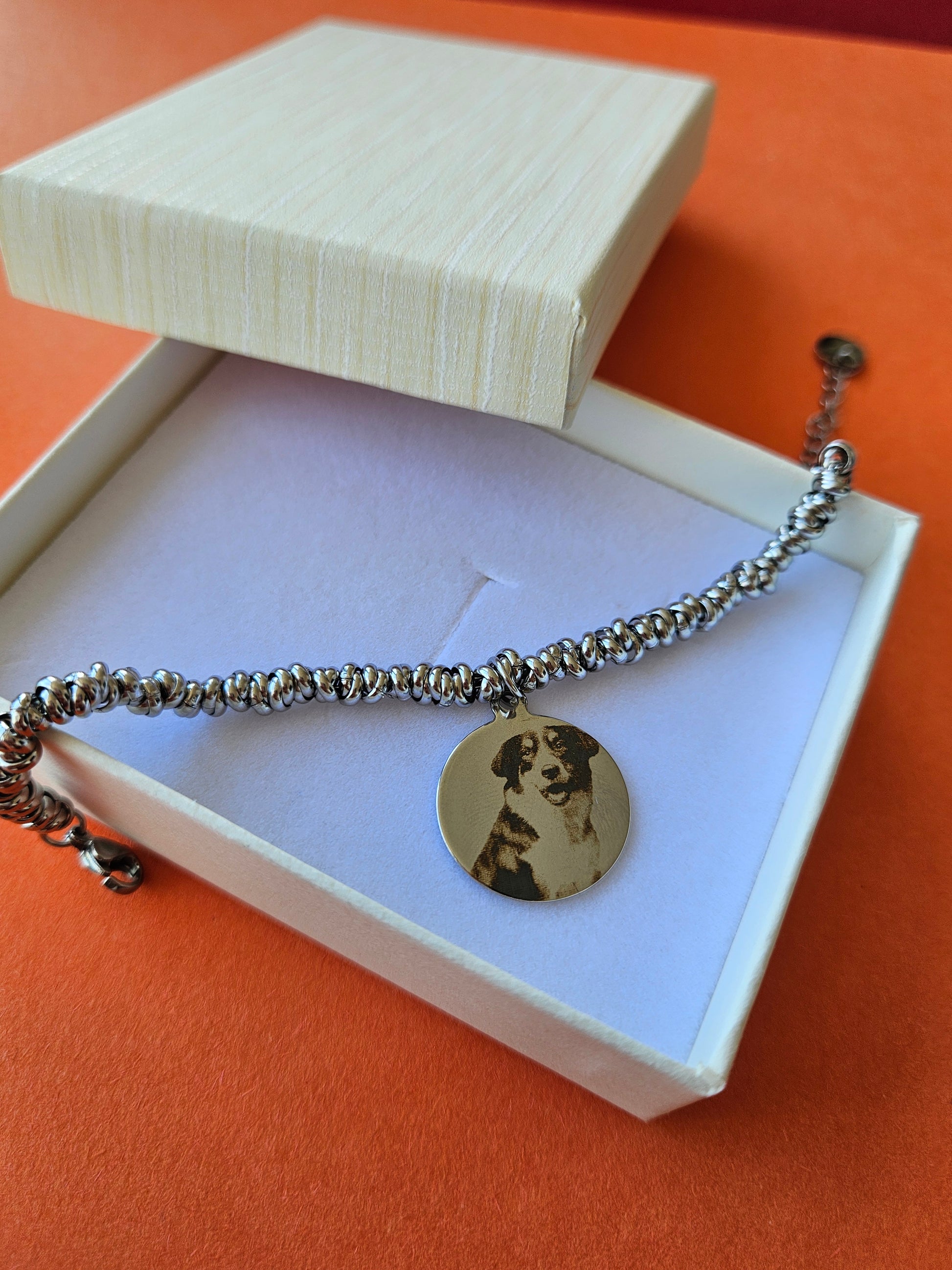 Bracciale con ciondolo tondo 22 millimetri con fotoincisione personalizzabile