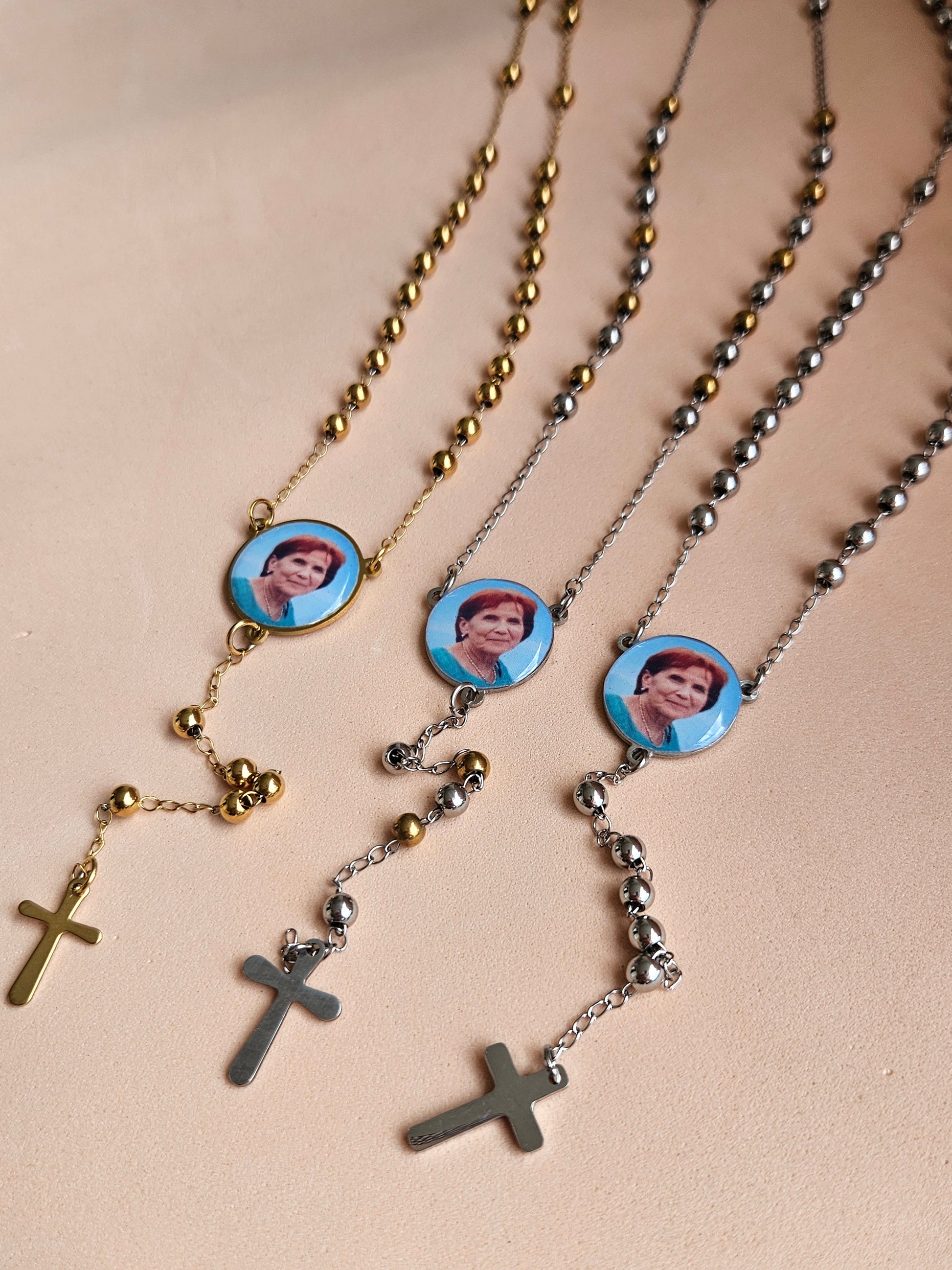 Rosario in acciaio inossidabile con foto tonda 21 millimetri
